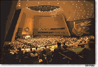 Wenn sich die Außenminister und vereinzelt auch Staats- und Regierungschefs am East River die Klinke in die Hand geben und vor der Versammlung sprechen, genießen die Vereinten Nationen die Aufmerksamkeit der Weltöffentlichkeit. Die Macht der Vollversammlung ist eng begrenzt. Ihre Aufgaben und Rechte sind in Kapitel IV der Charta geregelt. Bindende Entscheidungen kann sie nur über interne Angelegenheiten der UN fällen. Sanktionen sind die Domäne des Sicherheitsrates. Dennoch hat die Vollversammlung einen zentralen Platz in der Struktur der Vereinten Nationen. Denn nur hier haben die Vertreter aller Regierungen die Möglichkeit, weltpolitische Entwicklungen zu debattieren, nur hier haben Zwergstaaten wie Vanuatu und Luxemburg dasselbe Stimmgewicht wie Indien und die USA. Die Resolutionen der Vollversammlung sind deshalb wichtige Stimmungsbarometer und waren oft Wegbereiter für völkerrechtliche Verträge